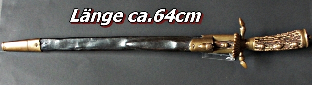 Dieser Hirschfänger, scheint auf aufgrund seiner markanten, vermutlich militärischen Klinge beidseitig gekehlt, mit ausgeprägtem Schör für Sammler, recht Interessant zu sein, doch militärischer Hintergrund ? Das Hirschhorn-Griffstück, mit drei Oliven und muschelförmigen Stichblatt ,ist ähnlich einem Mod. von 1865.