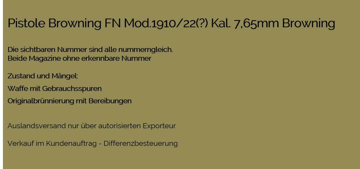 Pistole Browning FN Mod.1910/22(?) Kal. 7,65mm Browning
