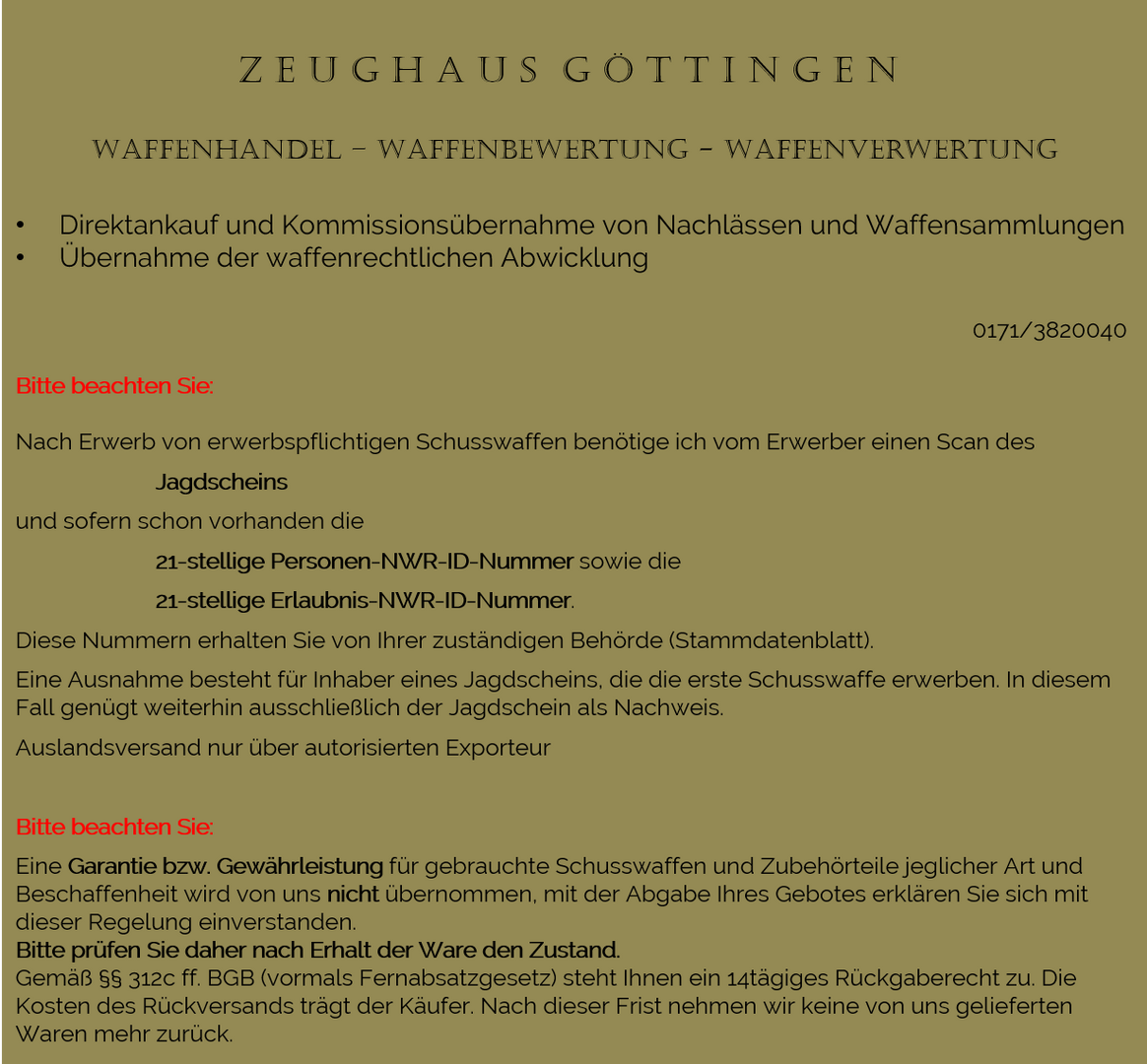 WICHTIG! Bei erlaubnispflichtigen Waffen können Sie nur mitbieten, wenn sie im Besitz einer entsprechenden EWB (Erwerbsberechtigung) sind.
