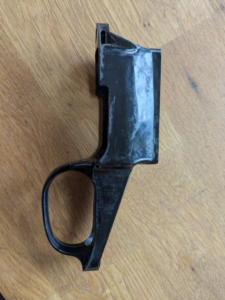 Zum Verkauf steht hier ein Magazinschacht bzw Abzugseinheit für einen Steyr Mannlicher Modell "L". Die Magazinentriegelung funktioniert durch die Schnapper am Abzugsbügel! Es ist ein kleines Eck am Abzugsbügel ausgebrochen. An der Stirnseite des Bauteiles ist der berüchigtigte Sprung!! Der Zustand ist hoffentlich auf den Bildern ersichtlich... Es funktioniert alles; aber aufgrund der Beschädigungen verkaufe ich das Ersatzteil explizit als DEFEKT!!