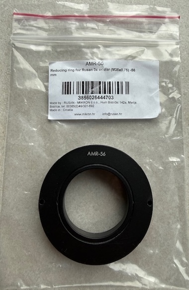 Mit diesem Reduktionsring können Sie das Rusan 2,5x oder 3x Okular in einen Rusan Adapter gleicher Größe einsetzen. Bei einem Systemwechsel können Sie somit schnell und einfach das Okular durch lösen des Spannhebels wieder herausnehmen.