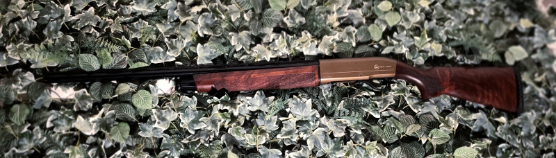 Zum Verkauf steht eine halbautomatische Flinte der Marke Kral Arms, Modell Azarax Color-X in edlem Bronze-Finish.