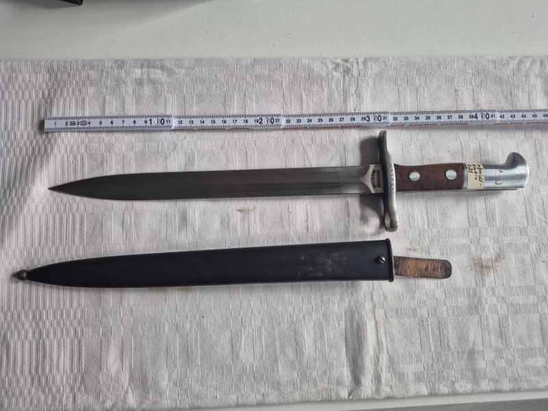 Verkaufe, aus dem Nachlass meines Vaters, dieses Schweizer Bajonett (Schmidt-Rubin K31),ob die Bezeichnung auf dem Schildchen richtig ist, weiß ich nicht. Zustand siehe Bilder.