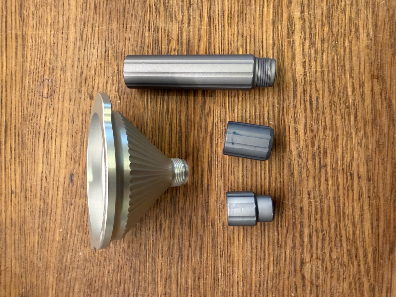 Pulvertrichter von Area 419 mit Verlängerung und einem Adapter Kaliber .30 und einem für Dillon Pulvermatrize.