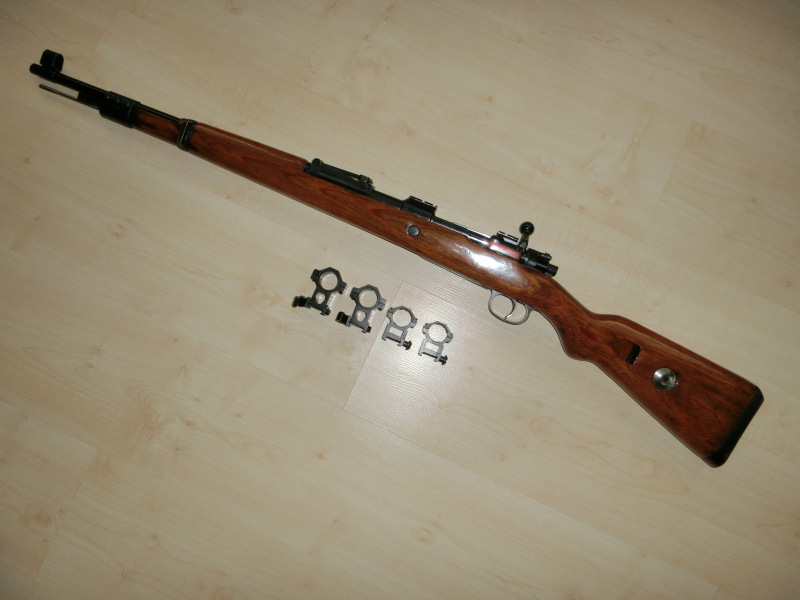 Karabiner 98k Cal. 308Win, Magazin 5Schuß. Die Waffe wurde überarbeitet und vermutlich bei diesen Arbeiten Nummergleich gemacht. Metallteile und Schichtholzschaft sehr gut. Neuwertiger, spiegelblanker Lauf mit Top Schußleistung. Mit CIP 2B Neubeschuß. Auf dem System 2teilige Picatinnyschiene. Anbei 2Paar Picatinny-Zielfernrohrmontagen ( Hoch und Mittel ). Fragen bitte vor dem Bieten stellen. Verkauf nur an Berechtigte. Privatverkauf : Keine Garantie, keine Rücknahme, keine Nachverhandlung. Nach dem Kauf benötige ich per Email eine Kopie Ihrer WBK nebst NWR-ID Erlaubnis- bzw. NWR-ID Personen-Nummer sowie vom Personalausweis und die Telefonnummer Ihrer Genehmigungsbehörde. Versand und Verkauf nur in Deutschland. Versand mit Waffenversand aber auch gerne Selbstabholung.