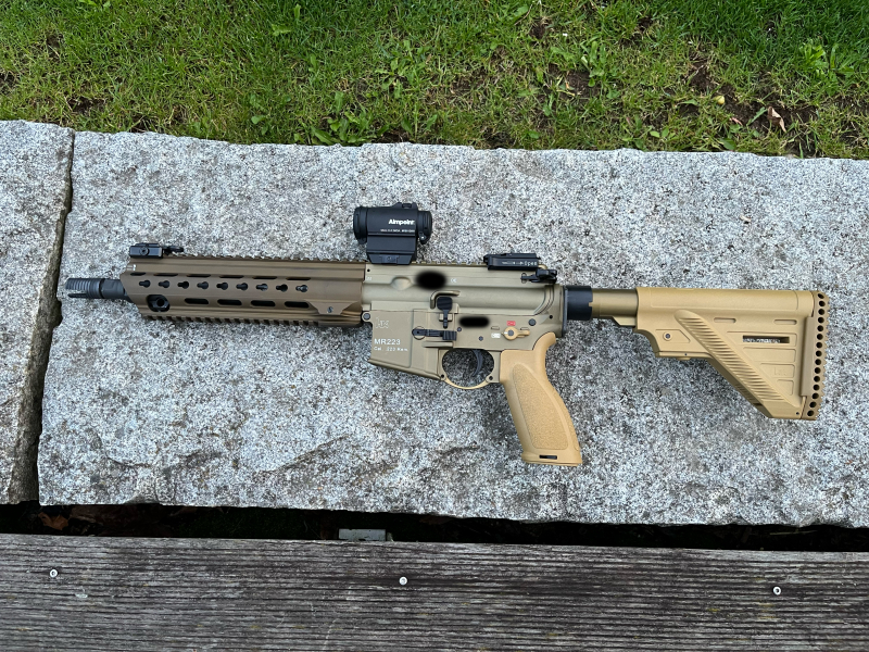 - Professionelle Laufkürzung durch Büchsenmacher (ehem. HK Mitarbeiter, jetzt selbstständig) auf 10,5'' nach Vorbild HK416.