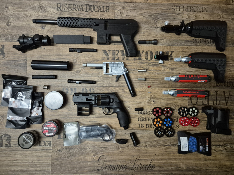 - 1 x 88g-CO2-Adapter mit On-Off-Switch + Druck-Anzeige und Schulterstütze (Z-RAM) + 3 x 88g CO2-Kapsel