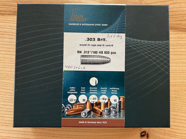 Verkaufe 460 Stück H&N Geschosse RN .312“/180 HS für .303 Brit. / 7,65 Arg. Geöffnete Originalverpackung. Versand mit DHL innerhalb Deutschland