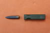 Angeboten wird eine hülsenlose Teleskoppatrone 4,73MMx33 DM10 in der Ausführung als Testkörper der Anzündkette 3. Form mit runder Schwebe, grünem Kunststoffkörper und beschichtetem (Teflon/ Greblon/ Illaflon?) Vollmantel-Weichkerngeschoss für das Gewehr HK G11 der Bundeswehr.