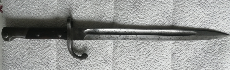 Biete in dieser Auktion ein Seitengewehr zum Kauf an, kein Hersteller auf der Klinge, jedoch an der Parierstange ein Zeichen und Nummer eingeprägt. Klingenlänge 30,2cm ,leider ohne Scheide.