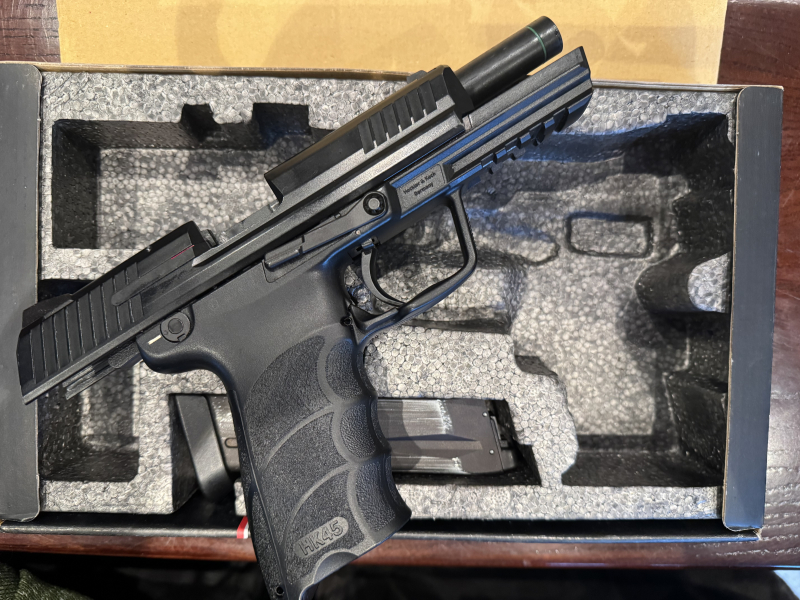 Verkaufe eine Softair HK45 der Firma Heckler und Koch, Umarex KWA. (Damals gekauft über SniperAS) Die HK45 kommt mit einem Magazin im HK Karton. Das Magazin scheint augenscheinlich den Druck zu halten. Die HK45 hat einen mir nicht nachvollziehbaren Fehler. Die Mechanik funktioniert, jedoch kommt es nicht zur Abgabe des Gasdrucks. Manchmal schießt sie, manchmal nicht. Sehr detailgetreuer Nachbau einer Original HK45. Das Alter der Dichtungen etc. entspricht dem Alter der HK45 von über 10 Jahren.