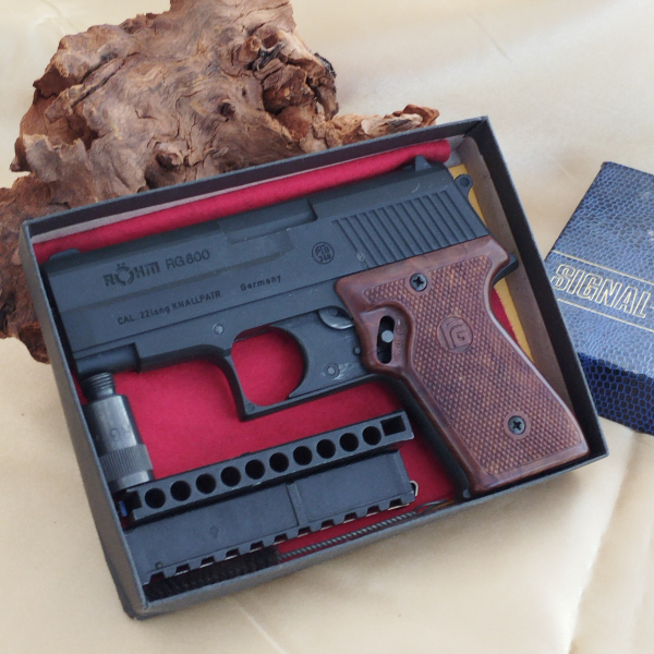 Verkaufe eine gut erhaltene Pistole vom Typ Röhm RG 600, Kal. .22 lang, PTB 348 von 1994 aus Erbschaft. Das Stück wurde nur wenig beschossen,