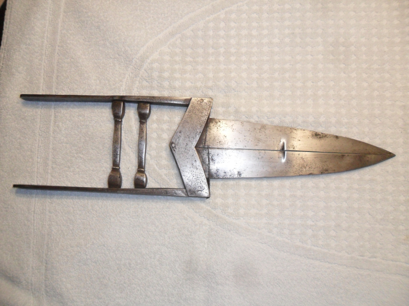 Biete einen indischen Scherenkatar an. Diese Waffe wurde ca.17./18. Jh. hergestellt. Beim Zusammendrücken der Griffe öffnet sich die Klinge und die innenliegende Klinge wird sichtbar. Diese innere Klinge konnte noch mit Gift präpariert werden und der Katar konnte auch ähnlich des Linkehanddolch fungieren.
