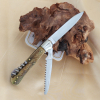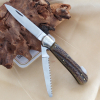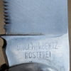 Verkaufe aus Sammlung: ein Jagdmesser der Fa. C. JUL. HERBERTZ aus den 30-iger Jahren, Griffe mit Hirschhorn, 3 teilig: Klinge, Säge u Korkenzieher.Gesamtlänge 19,5 cm, Klingenlänge 8,6 cm. Säge wahrscheinlich nie benutzt, Klinge hat im unteren Berei noch eine kleine Zusatzsäge,