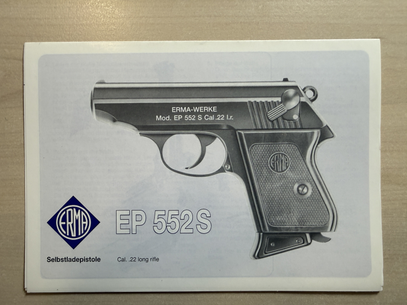 Biete hier eine Bedienungsanleitung für die Selbstladepistole Erma EP 522 S an.