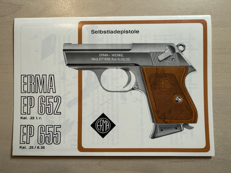 Biete hier eine Bedienungsanleitung für die Selbstladepistole Erma EP 652 / EP 655 an.