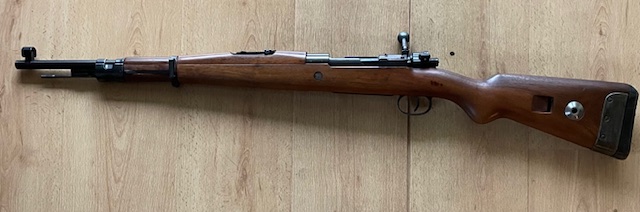 Verkauft wird ein Gebirgsjäger Karabiner Modell G 33/40 Code 945 1940 mit Seriennummer 6034 gestempelt. Die Waffe befindet sich in einem guten Zustand. Der Lauf ist blank und hat scharfkantige Felder und Züge Dia. 7,88 gestempelt. Ich kann keinen aktuellen Beschuss feststellen. Die Bilder sind Bestandteil der Beschreibung. Es handelt sich um ein Privatverkauf, also ohne Garantie. Es können jederzeit weitere Bilder angefordert werden.