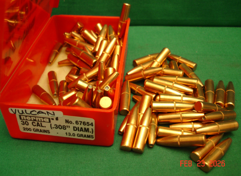Die 100 +1 Geschosse im Kaliber .308" sind vom bekannten und jagdlich sehr erfolgreichen Typ VULCAN der Firma Norma. Die Geschosse weisen eine Rändelung auf, die für einen festen Sitz des Geschosses mit z.B. der LEE factory crimp Matrize gewährleistet ist.