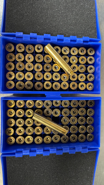Verkauft werden hier 100 Stück Hülsen im Kaliber .444 Marlin von Remington R.P. Die Hülsen sind vorgereinigt, entzündert, kalibriert. Die Kunststoff Patronendosen auf dem Foto ist nicht Bestandteil der Auktion und dienen nur der Darstellung der Menge.