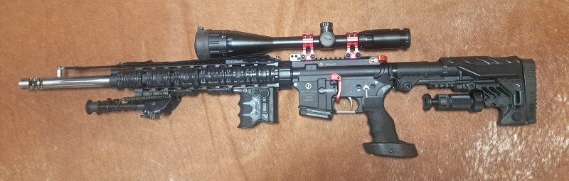 Schmeisser AR 15 Kaliber 223 Rem. mit Stainless Matchlauf mit Kompensator 20‘‘ Viele Tuningteile siehe Bilder, Flatterband, Optik 10-40x50 AOE Beleuchtet rot/grün, Zustand siehe Bilder