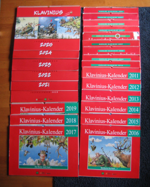 Verkaufe 19 Klavinius Jagdkalender von 2001 bis 2025 mit Ausnahme des Jahres 2003, Die ältesten Kalender sind nur an den Kanten ein wenig mitgenommen. Alle Kalenderblätter sind vorhandenen und „unvermalt“. Käufer kauft entgegen der geltenden EU Richtlinie, ohne Gewährleistung, Garantie und Rückgaberecht, wie auf dem Bilde gesehen/beschrieben. Artikel wird versand, sobald Zahlung eingegangen ist.