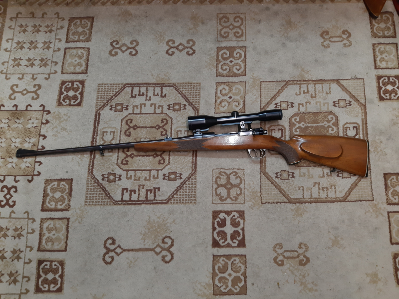 Verkaufe eine Rep.-Büchse Mauser 98 im Kal. 7x64 montiert mit einem Zeiss Diatal 6x42 A1 auf einer SEM. Der Schaft hat eine Backe, Kunststoffkappe, Fischhaut und Riemenbügel. Deutscher Stecher und Mauser Flügelsicherung. Der Lauf ist blank, Brünierung gut und hat eine Visierung. Gesamtlänge 119cm, Schaft 37cm, Glas 29cm und Lauf 65cm. Verkauft wird nur gegen Vorlage einer gültigen Erwerbsberechtigung (EWB) und Vorlage der NWR ID-Nr.: P + E!