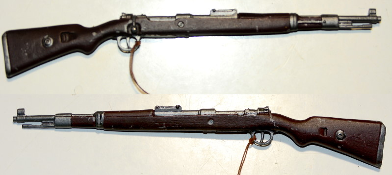 Sehr schönes und realistisches Modell eines Karabiners 98k, Zinn, 17,8 cm lang, keine beweglichen Teile, minimale Lackabplatzungen, ältere Fertigung