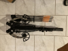 Zur Auktion kommt eine Xb-65 Chester von man Kung in Camo. Die Armbrust ist in einen wenig geschossenen funktionstüchtigen Zustand. An der linken Cam ist eine Unterlegscheibe beschädigt was bis jetzt die Funktion nicht gestört hat. Ich lege eine komplett neue Cam dazu die dann beim nächsten Sehnenwechsel getauscht werden kann wenn man mag. Die Armbrust schießt mit 400grain Bolzen 410 fps also schon recht kräftig. Zum Lieferumfang gehören Armbrust,Zielfernrohr, Seilspanner, Köcher mit 4 Bolzen, Ersatz Cam, sehnen Wachs und ein paar Werkzeugschlüssel. Die Armbrust wird zerlegt in Originalverpackung mit Anleitung geliefert. Bild drei ist im gespannten Zustand, sie ist Mega kompakt. Keine Leerschüsse oder Experimente.