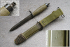 Biete hier dieses originale Bajonett für das Gewehr G3 an, norwegische Fertigung aus der bekannten Waffenfabrik in Kongsberg, sehr guter Original-Zustand, Gesamtlänge ca. 30cm, Klingenlänge ca.17cm, ohne erkennbare Markierung, komplett mit dazugehöriger Scheide, diese gestempelt mit U.S.M8 „B.M.CO. ( Bailey Manufacturing Company )“, sowie einer weiteren Kennzeichnung "VP45", die Scheide im unteren Bereich mit einer braunen Lederschnur / Beinschnur umwickelt, siehe dazu auch letztes Foto, Fragen hierzu gerne per email, allen Bietern viel Erfolg. Auslandsversand bitte vorher erfragen, vielen Dank !