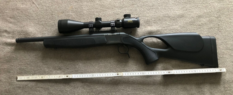 Die Gesamtlänge der Waffe beträgt 80cm. Das Schaftmaß von Schaftende bis Abzug ca. 35,5 cm. Die Waffe wurde jagdlich wenig geführt und hat demzufolge eine nur geringe Schussbelastung und geringe Gebrauchsspuren. Das mittels Ringmontage montierte Tasco 1,5-7x50 Abs. 4 LP ist ausdrücklich NICHT Bestandteil der Auktion, kann aber optional für 150 Euro erworben werden.