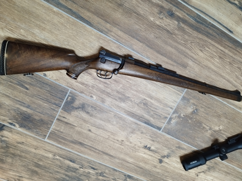 Sie haben hier die Möglichkeit eine wunderschöne Kultwaffe Mauser 66 S Ausführung Stutzen im Kaliber .30-06 zu erwerben. Sehr edle Schaftverschneidung, Brünnierung ohne großen Abrieb, Schaft ohne tiefe Kratzer, in gutem gebrauchtem Zustand. Schussleistung je nach Munition auf ein 2 EUR Stück (100 Meter). Kann trocken ohne Stecher und weich mit Stecher geschossen werden. Magazin 3+1 im Lauf. Top Waffe, nur wegen Überbestand zu verkaufen.