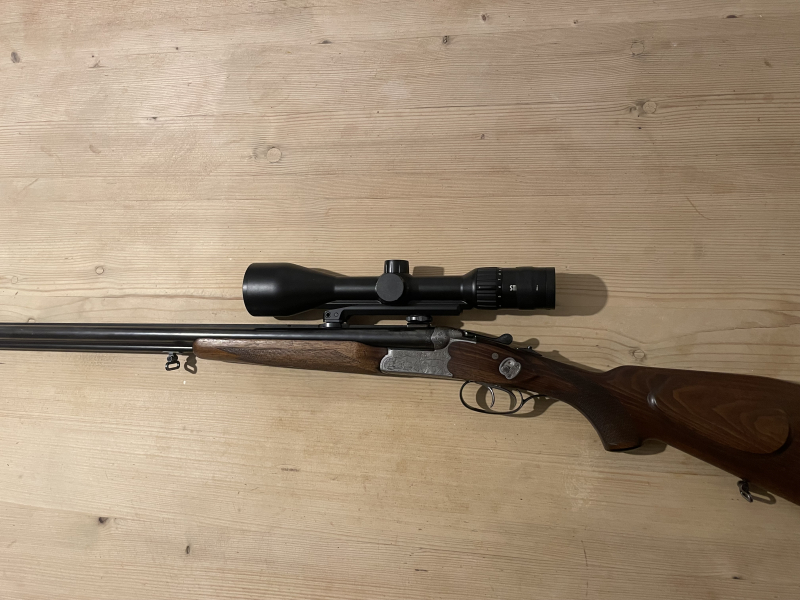 Das abgebildete Steiner Ranger 4 3-12x56 ist ausdrücklich nicht Teil des Angebotes! Es kann aber separat für 1200,-€ VB nur zusammen mit dem Drilling erworben werden bei Interesse.