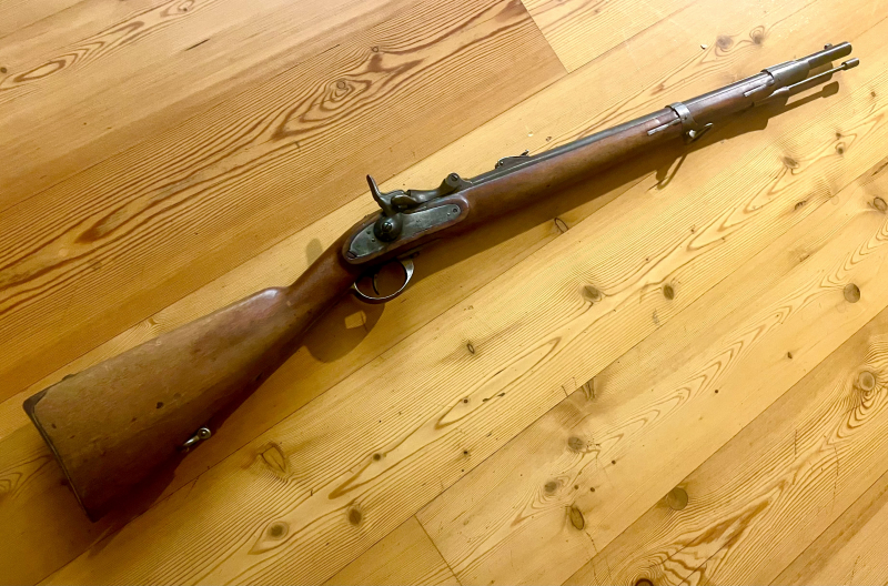 Kuk Extra-Korps-Gewehr M 1862/67, Umbau zu System Wänzel, Gesamtlänge 1052 mm, Kaliber 13,9 mm, auf der Seitenplatte 863 und Doppeladlerpunze, oben W 68 und Doppeladler, am Gehäuse Rischawy, unverputzte Originalpatina...