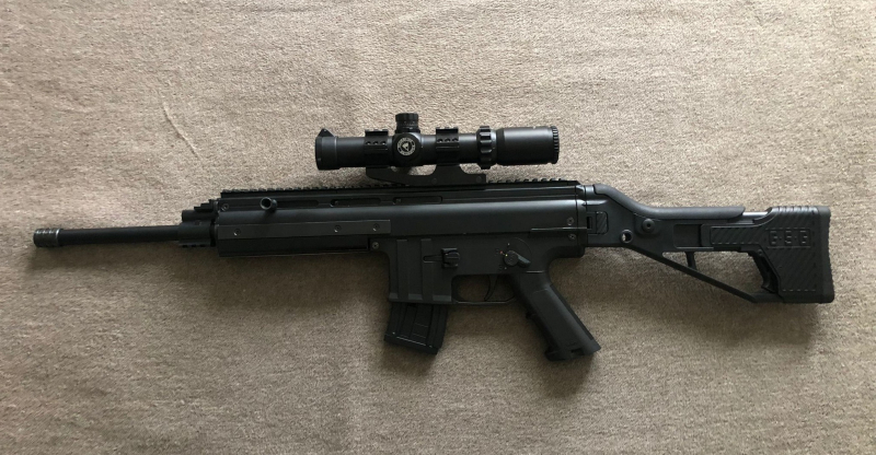 Die Waffe verfügt über einen stabilen Klappschaft, der vielseitg verstellbar ist. Das mittels Ringmontage montierte VisionKing 1-10x28 Abs. MilDot ist ausdrücklich NICHT Bestandteil der Auktion.