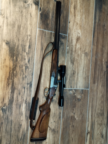 Sehr schöne BBF von Sauer und Sohn im Kaliber 7x57R und 16/70 Schrot. Brünnierung ohne großen Abrieb, Schaft dem Alter entsprechend im Top Zustand. Zielfernrohr ein Zeiss 6x42 mit Absehen 4 und Suhler Einhackmontage. Schussleistung sehr gut, zuverlässige BBF, welche nur wegen Überbestand verkauft wird.