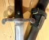 Kuk Kropatschekbajonett, Fertigung von Waffen Steyer, originaler Lederkoppelschuh mit Messingschnalle, schwarz lackierte Scheide, alles im Topzustand..