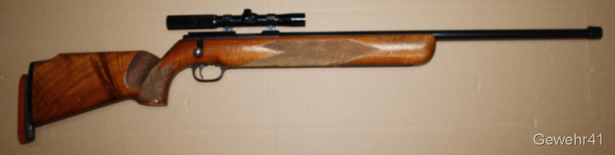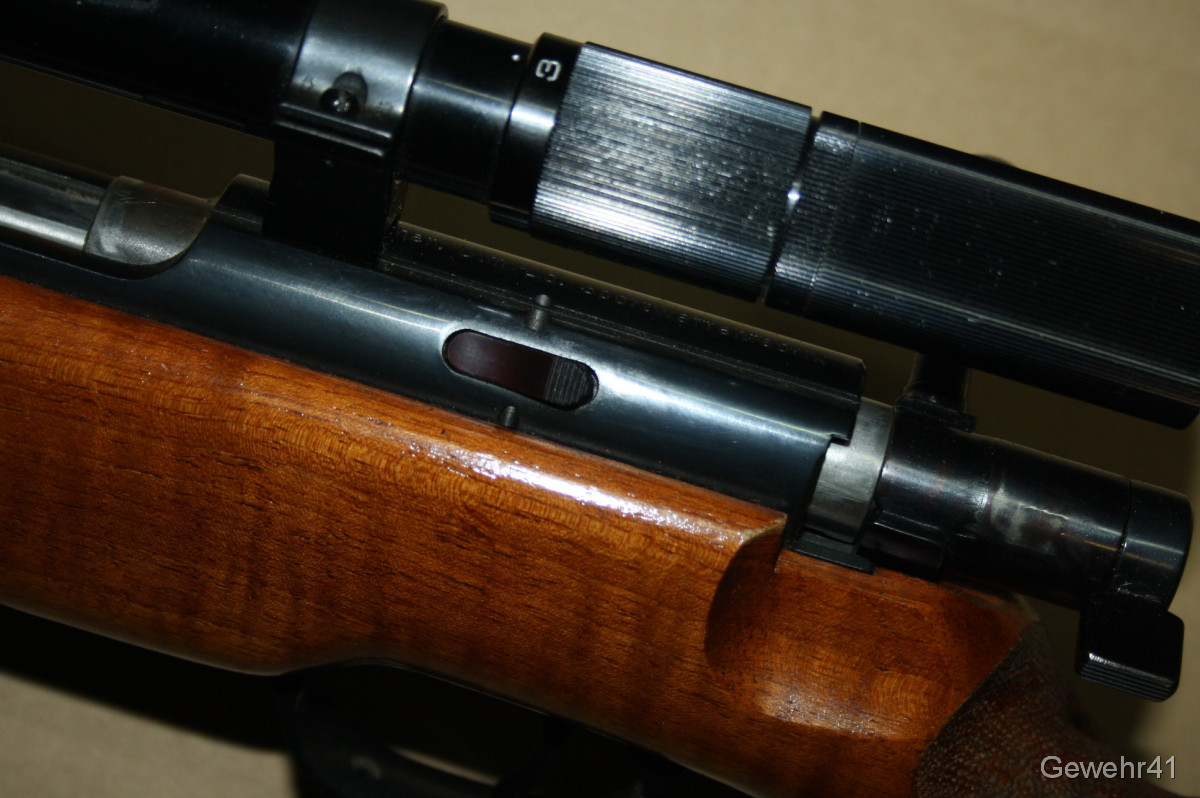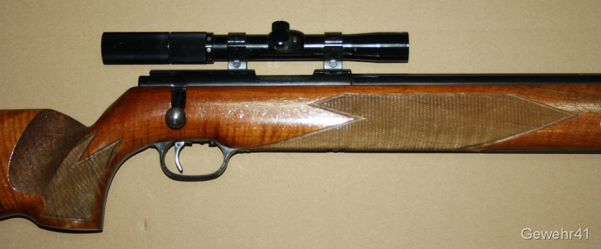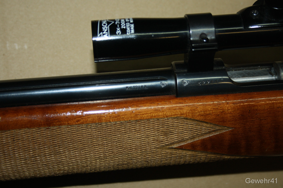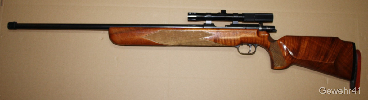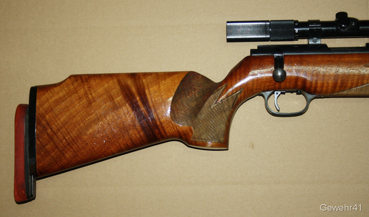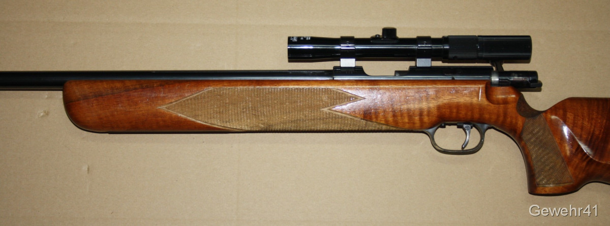 Älteres KK Match Gewehr von Walther im Kal. .22lfb mit montiertem ZF Anschütz 3-7x20. Schöner Zustand mit nur leichten Gebrauchsspuren. Lauf und Funktion einwandfrei.