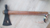 Handgeschmiedeter Tomahawk mit Herzausschnitt. Am Ende wurde eine Hornkralle mit Perlenverzierung angebracht.