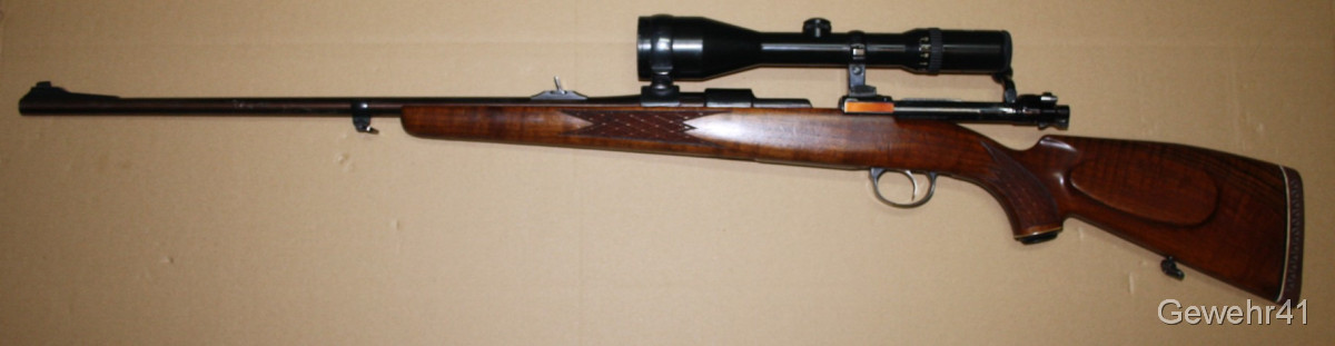 Sie bieten auf diesen 98er Mauser Repetierer im Kal. 8x68S mit montiertem ZF Schmidt&Bender 3-12x mit Abs. 4 auf SEM. Normale, leichte Gebrauchsspuren. Lauf und Funktion einwandfrei. Lauflänge 63,5cm, Gesamtlänge 117,5cm, Schaftlänge 35,5cm.