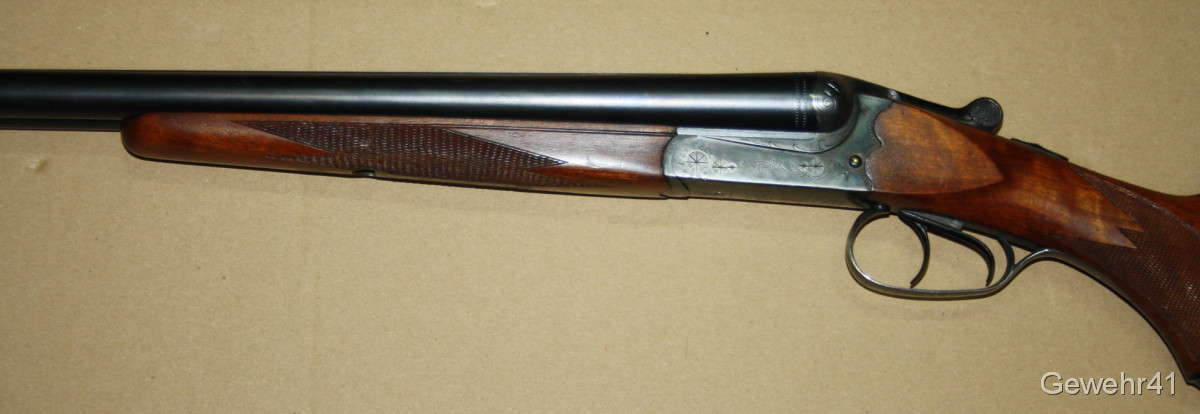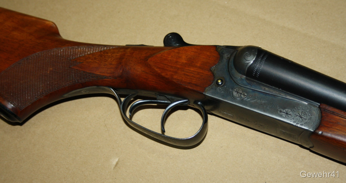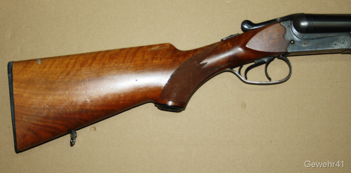 Sie bieten auf diese Querflinte von Simson/Suhl im Kal. 12/70. Schöner Zustand mit nur leichten Gebrauchsspuren. Q1-Fertigung! Lauflänge 71cm, Schaftlänge 34,5cm, Gesamtlänge 111cm. Läufe und Funktion einwandfrei.