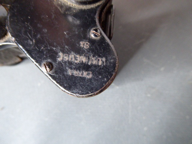 Aus meiner Sammlung gebe ich, ein Altes Französisches Militär Fernglas als Ersatzteilspender ab. Kenner werden es sicherlich wissen wo das Teil getragen wurde. Belederung ist noch vollkommen intakt, oben sind die Linsen kaputt, ist sonst aber alles Beweglich. Man kann bestimmt noch einige Teile gebrauchen. Alles andere entnehmen Sie Bitte den Fotos. Kann zu jederzeit bei mir besichtigt werden. Privatauktion keine Rücknahme und Garantie.