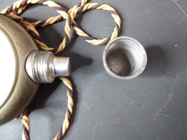 Aus meiner Sammlung gebe ich, eine alte Reservisten Flasche von 1903 aus Glas mit Blech ummantelt innen mit Bild ab. Kenner werden es sicherlich wissen wo das Teil getragen wurde. Glasflasche mit originalem Schraubdeckel und der Überdeckel als Trinkbecher. Alles andere entnehmen Sie Bitte den Fotos. Kann zu jederzeit bei mir besichtigt werden. Privatauktion keine Rücknahme und Garantie.