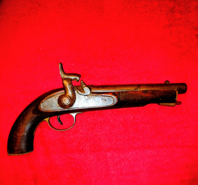 ANTIKE PERKUSSIONSPISTOLE, LÄSST SICH ZWEIMAL SPANNEN UND ABSCHLAGEN, LADESTOCK ETWAS SPÄTER,