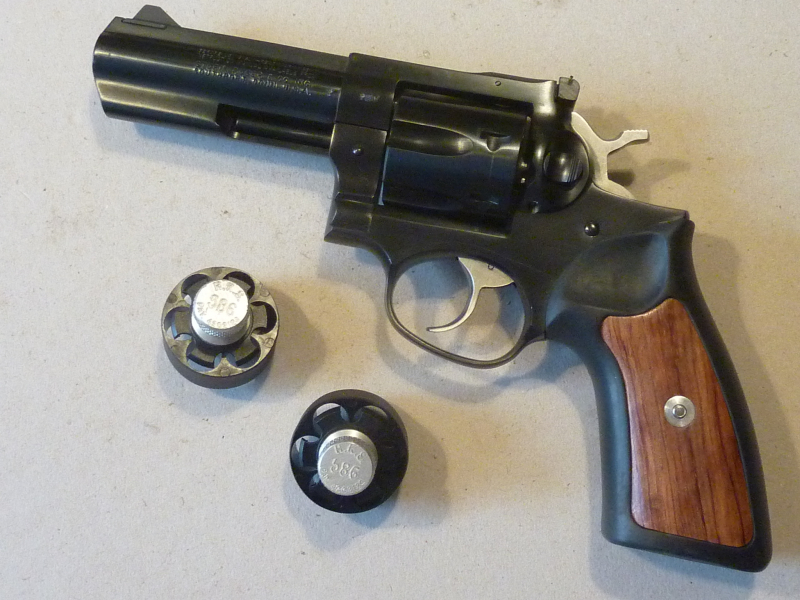 Modell Ruger GP 100, 4 Zoll, 6 Schuss, Visierung verstellbar, Griffschalen Holz/Gummi.