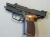 Werksgetunt von Sig-Sauer mit LPA-Visierung. Holzgriffschalen, Originalgriffschalen beiliegend.