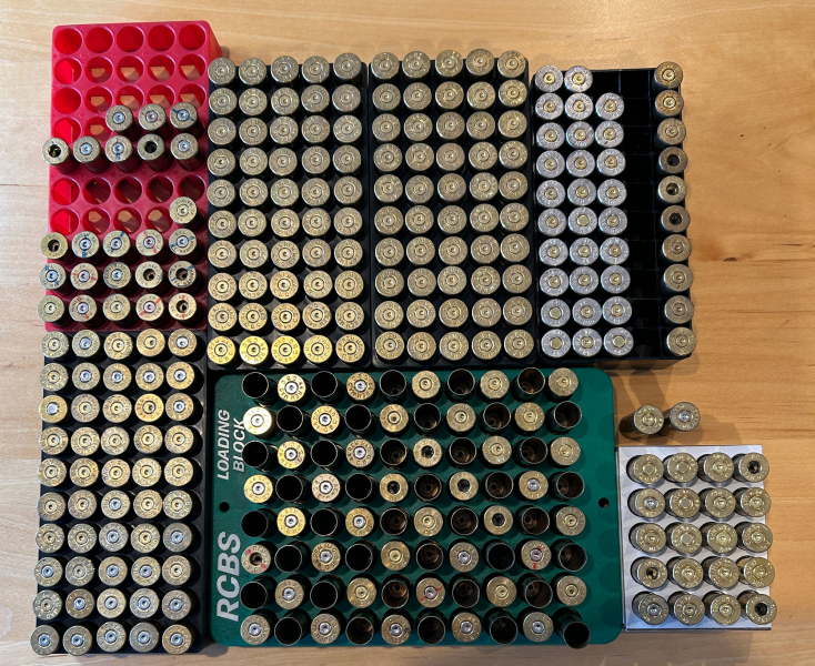 Sie wurden zum Teil schon einmal wiedergeladen und sind teilweise auch erst einmal abgeschossen worden. (Originalzündhütchen noch drin)