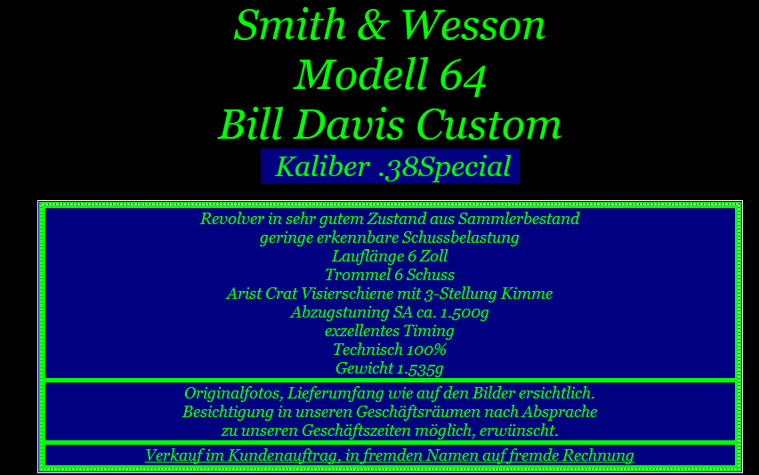 Smith & Wesson Modell 64 Bill Davis Custom Kaliber .38Special