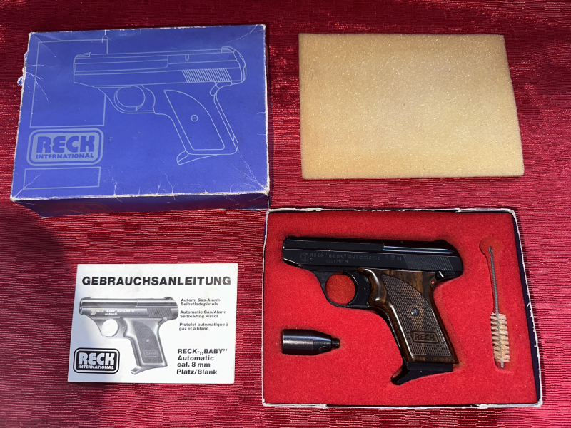 Aus Sammlung diese kleine,feine Rarität,von dem Hersteller scharfer Schusswaffen ReClub !Kleiner "Taschenblitz" im starken Cal.8mm Knall&Gas,Beschussjahr 1983.Wie damals noch zu liberalen Zeiten möglich und erlaubt ist der Lauf nur minimalst verbaut damit keine scharfen Geschosse den Lauf verlassen können.Dadurch auch sehr schöne,abschreckende "scharfe" Mündung,heute wäre es so leider aufgrund von verscrften PTB-Vorgaben undenkbar...Viele Bastler konnten sich leider speziell bei solchen,kleinen,hochwertigen Pistolen in diesem schönem Caliber nicht zurückhalten,sodass die PTB verständlicherweise reagieren musste,und so werden solche Modelle ,so liberal in diesem schönem Caliber seit über 30 Jahren nicht mehr gebaut,nur Altbestand zählt,was man hat,hat man,Altbestand ist natürlich geschützt.Sehr schöner Sammlerzustand,komplett so wie damals aus dem Laden.Magazinhalterung unten abgebrochen.Für geschickte Hände mit etwas Zeit sicher kein Problem.Die Bilder als Beschreibung beachten.Erwerb &Besitz frei ab 18.Von privat ab 1€ ohne Rücknahme.EU Länder -Versandkosten 25€.