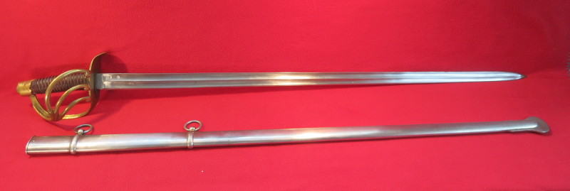 Pallasch für Schwere-Kavallerie, Frankreich Klingenthal, Gesamtlänge 111 cm, Klingenlänge 95 cm, mit Scheide aus Stahl. Zustand siehe Fotos, keine Garantie, keine Rücknahme, private Auktion.