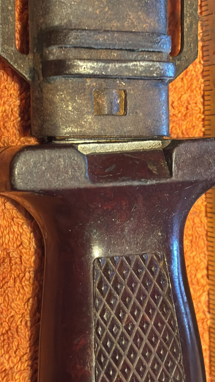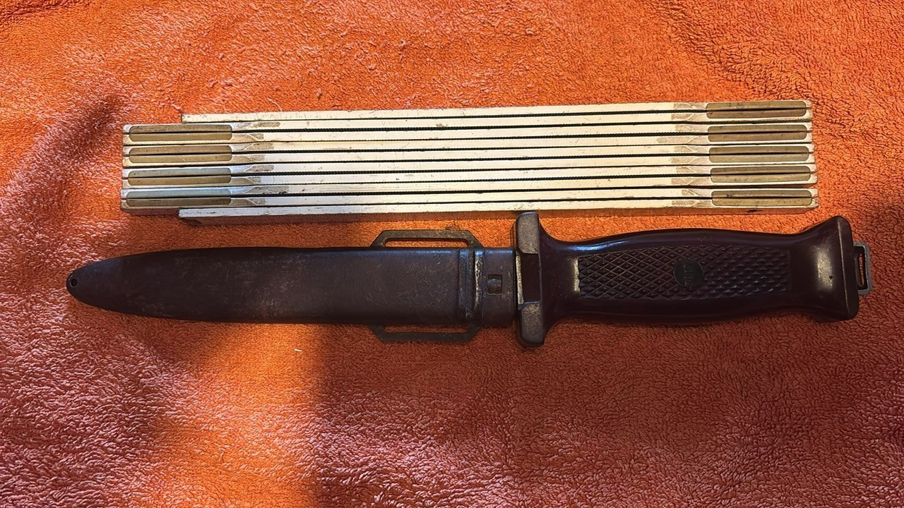 Dieser alte Grabendolch mit Scheide ist m.M. nach in einem guten Zustand.